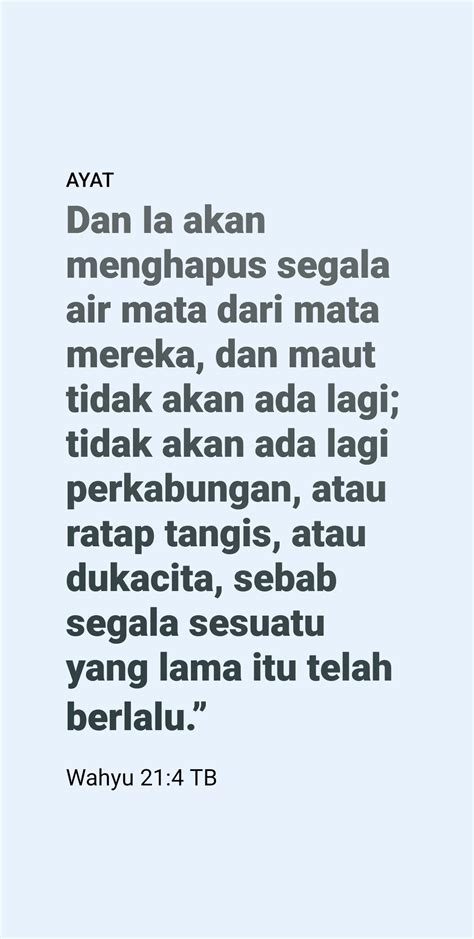 *Matius 6 : 34*Sebab itu janganlah kamu kuatir akan hari besok, karena hari besok mempunyai kesusahannya sendiri. Kesusahan sehari cukuplah untuk sehari.