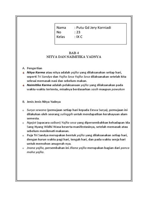 9. 5. melakukan tri sandya setiap hari adalah bentuk pelaksanaan dari... a. pitra yadnya b. manusa yadnya c. rsi yadnya d. dewa yadnya 6. hutang kepada orangtua dan leluhur dibayar dengan melakukan pitra yadnya dan... a. dewa yadnya b. rsi yadnya c. manusa yadnya d. bhuta yadnya